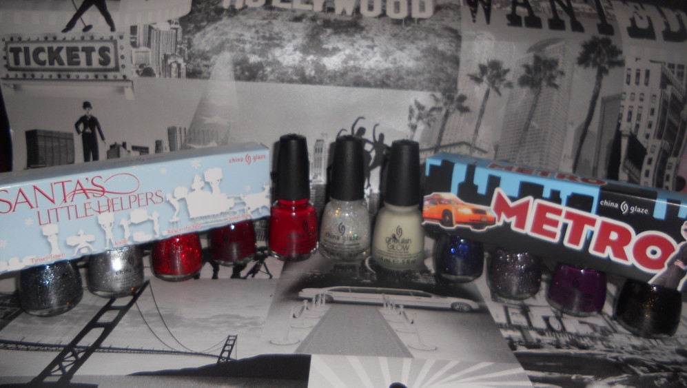 I was supposed to post this yesterday, but I was so busy I didn't get around to doing so. Yesterday, I went to my local Sally's to see if they had any of the new China Glaze - Eye Candy collection, to my disappointment they didn't. What they did have, however, was the Let It Snow collection. I've been eyeing some of the colours up for a while now, so I thought I may as well purchase a few. Unfortunately they had sold out of some of the full sized bottles that I wanted, but they did have the minis. I also found the mini Metro collection too! Now usually I'm not a big fan of mini bottles, but they were having a 3 for 2 on the Christmas collection, so I picked up a full sized Winter Berry and Snow Globe and then Santa's Little Helpers which contains Tinsel Town, Icicle, Ring In The Red & Velvet Bow, Tinsel Town & Velvet Bow being the two bottles they didn't have in the full sized version. In the mini Metro there was CG In The City, Skyscraper, Midtown Magic & Urban-Night, I had seen swatches of Midtown Magic & Skyscraper and wanted to try them, unfortunately, again, my useless Sally's didn't have ANY of the full sized bottles, so I had to settle for the mini. I also picked up the Ghoulish Glow from the new Haunted Halloween collection. All of this came to just under £30 with my 20% off voucher, which isn't too bad I guess, I just wish they had had the full sized versions as it's also 3 for 2 on any China Glaze polishes at the moment!