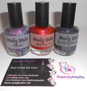 The next lot of pretties to arrive courtesy of Benedicte, were these three Dandy Nails polishes created by Sandy from Dandy Nails. The polishes I picked out were Funhouse, Inside The Fire & You Set My Soul Alight (Who doesn't love Muse?) You can purchase Dandy Nails from her Etsy shop for between $7.50 & $8!